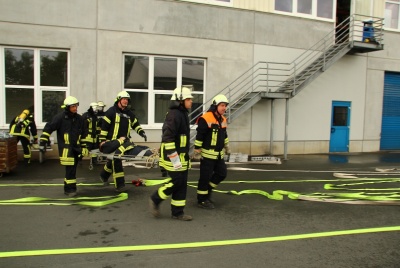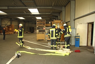 Rauchentwicklung aus Teilbereichen des Gebäudekomplexes. Nach einen Brandausbruch in Halle 5 und 6, können sechs Mitarbeiter den Bereich nicht mehr eigenständig verlassen (Vier schwere Verletzungen und zwei mittlere Verletzungen). Vier Mitarbeiter gelangen mit leichten Verletzungen ins Freie. Durch die Absauganlage wird das Feuer auf die Filteranlage im Innenhof übertragen. Weitere Einspielung: Brand Müllcontainer neben Halle Fünf Atemschutzträger verletzt.Alarmiert wird nach der Alarm- und Ausrückordnung der FF Meschede. Im Erstzugriff die Löschgruppe (LG) Everberg, Wehrstapel, Remblinghausen und der Löschzug Meschede (LZ) – (drei Fahrzeuge)