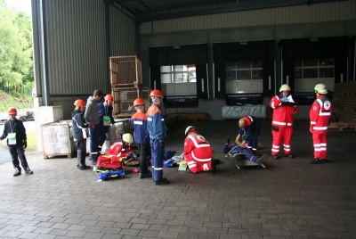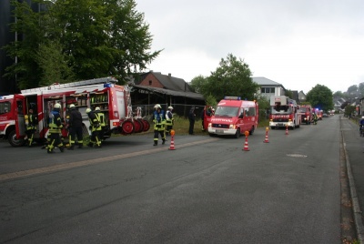DRK zur Eigensicherung und Erstversorgung der verletzten Personen (Jugendfeuerwehr Wehrstapel-Eversberg). Diese bildeten zugleich den 4 Abschnitt -Verletztensammelstelle. Weiter wurden alarmiert die LG Calle, Wallen Olpe Wennemen und der LZ Freienohl (zwei Fahrzeuge). Diese bildeten den 2 Abschnitt – Retten und Löschen – Wasserversorgung aus drei Löschwasserbehältern (Zisternen).Weiter wurden alarmiert die LG Berge, Visbeck und Grevenstein (ein Fahrzeug) diese bildeten den 3 Abschnitt – Wasserversorgung aus dem Wassernetz Hydranten. Wasserversorgung für Abschnitt 2, Brandbekämpfung. Das Löschwasser wurde den betriebseigene Zisternen und den öffentlichen Wassernetz aus Hydranten entnommen.