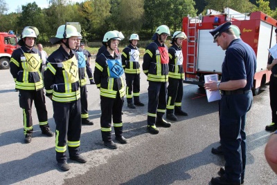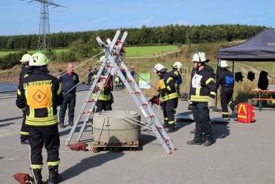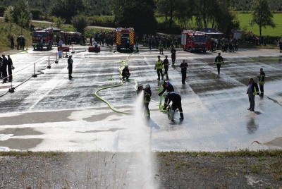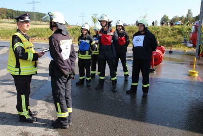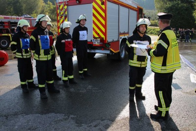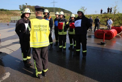Niederberndorf / Meschede - Unter den „kritischen Blicken“ des stellv. Kreisbrandmeisters Uwe Schwarz aus Olsberg und 76 Schiedsrichtern nahmen am Samstag, den 26. September, 37 Feuerwehrfrauen und 754 Feuerwehrmänner in 91 Übungsgruppen aus dem Hochsauerland und angrenzenden Kreisen teil. Unter ihnen Gruppen aus Herne-Crange, Bochum, Lohmar-Birke, Finnentrop und Bad Wünnenberg-Fürstenberg.
