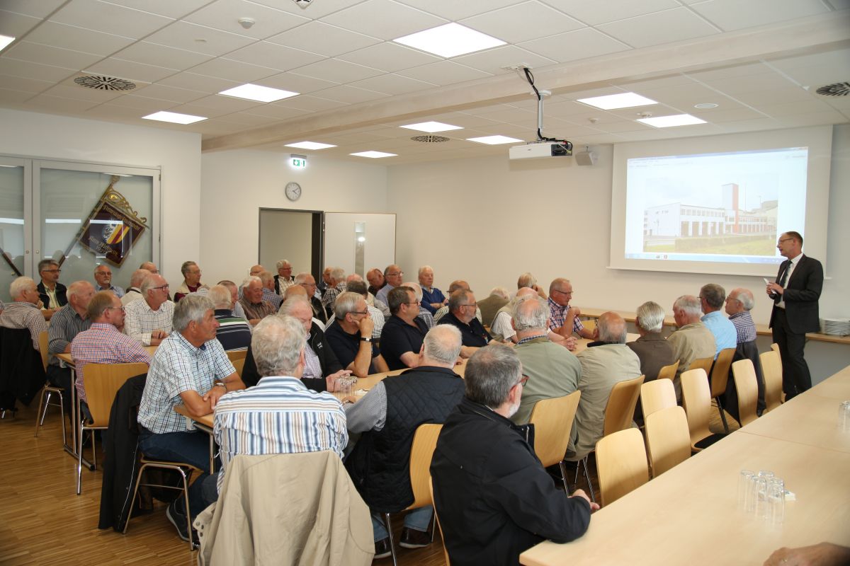 Nachdem in den vergangenen Jahren bereits verschiedenste Sehenswürdigkeiten und Firmen aus der näheren und weiteren Umgebung besichtig wurden, blieben die Feuerwehrsenioren in diesem Jahr im Stadtgebiet. Die Besichtigung des Feuerwehrhauses Meschede nach den Umbau- und Erweiterungsmaßnahmen standen auf dem Besichtigungsprogramm. Empfangen wurden die Wehrleute von dem stellvertretenden Löschzugführer Jens Marx und Robert Hillebrand. Bevor die Besichtigung richtig losgehen konnte wurde die Versammlung durch einen Einsatz unterbrochen. Nachdem die Wehrleute von ihrem Einsatz zurückkamen wurden die Räumlichkeiten des Löschzuges und der Stadtfeuerwehr begutachtet. Besonderes Interesse galt der Fahrzeughalle, neuen Fahrzeugen und den eingebauten technischen Anlagen im Feuerwehrhaus.