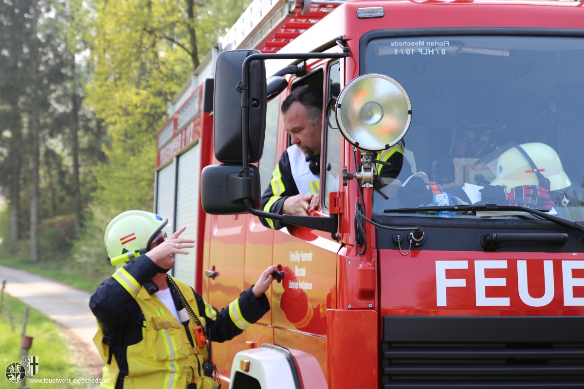 Dies ist die Aufgabenstellung bei der diesjährigen Zugübung des II. Löschzug (LZ) - Wasser der Freiwilligen Feuerwehr Meschede mit den Löschgruppen (LG) Eversberg, Remblinghausen und Wehrstapel. Beim Eintreffen der ersten Rettungskräfte, aus Wehrstapel, wurden drei Personen in schlechten körperlichen “Zustand“ vorgefunden jedoch ohne äußerliche Verletzungen. Eine ca. 500 qm große Brachlandfläche befand sich in Brand. Das Feuer drohte sich weiter durch Windeinwirkung auszudehnen. Eine Brandbekämpfung, Riegelstellung, zum Schutz der erkrankten Personen wurde von drei Trupp`s aufgebaut. Das Löschwasser lieferten hierbei die sich vor Ort befindlichen Löschfahrzeuge.