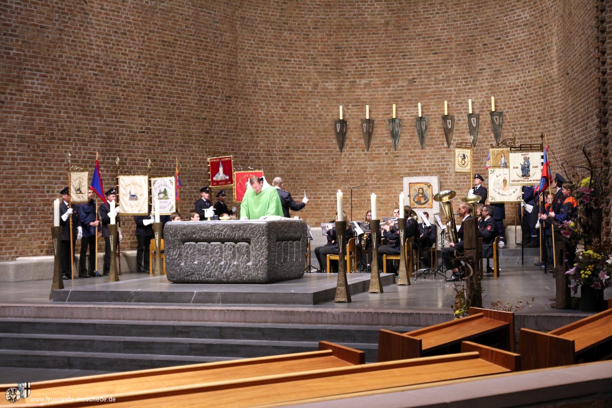 Der Musikzug der Freiwilligen Feuerwehr Meschede begleitete den Gottesdienst musikalisch. Im Anschluss an dem Gottesdienst fand ein Stehempfang im Ausstellungsraum des Klosters statt. Hier begrüßte Wehrleiter Hubertus Schemme die Rettungskräfte und hieß sie willkommen. Schemme bedankte sich bei allen Teilnehmer und Mitwirkenden, die zum guten Gelingen der Messe beigetragen haben. In Anschluss gab es noch einen gemütlichen Ausklang mit guten Gesprächen wobei Erfahrungen und Erlebtes ausgetauscht wurden.