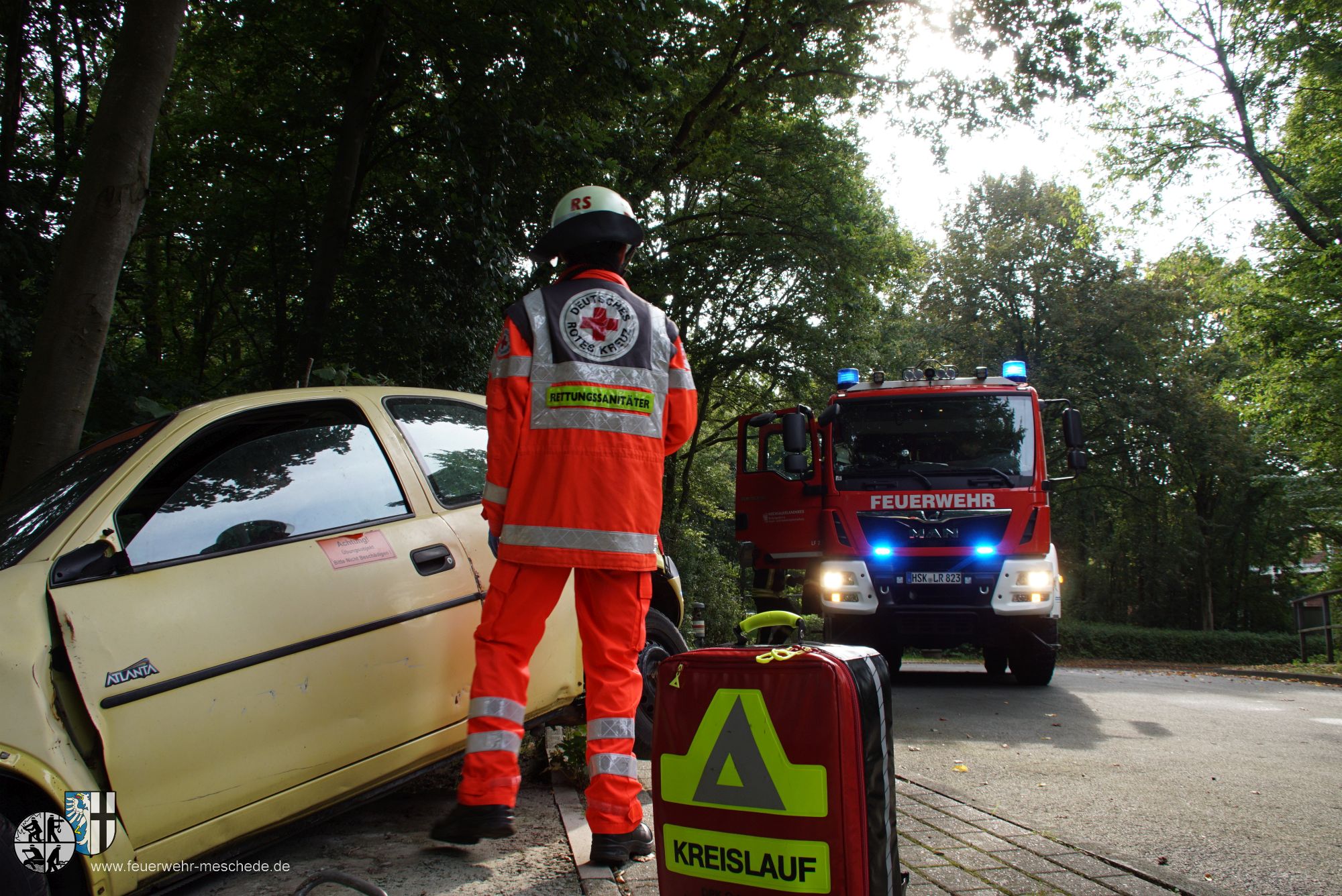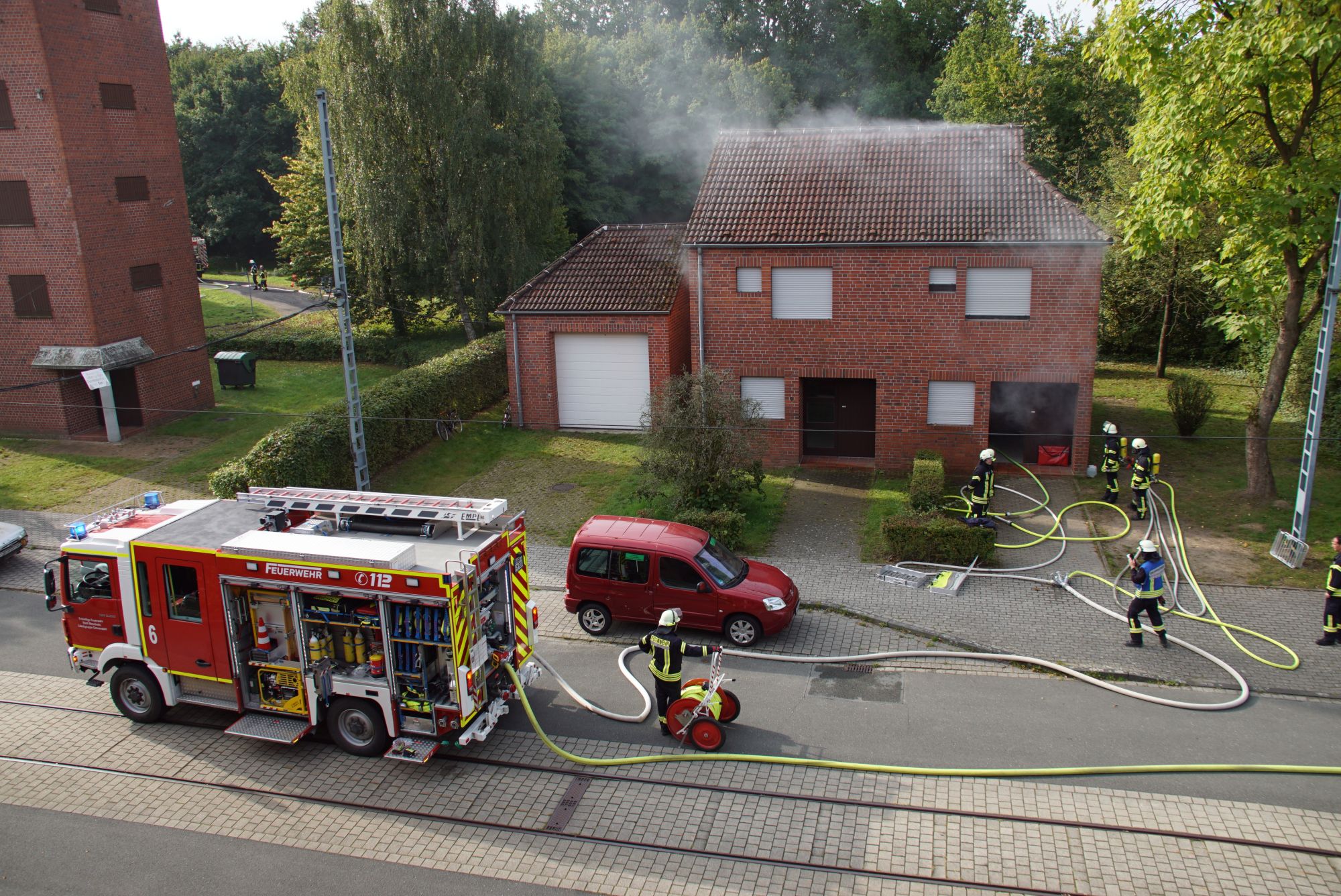 Nach der Ankunft und einer kurzen Einweisung durch die Übungsleitung, begann bei bestem Spätsommerwetter das Ausbildungsprogramm. Mit Hilfe von Dummies, Nebelmaschinen und nicht eingeteilten Kameraden wurden in der Kulisse des Außengeländes realitätsnahe Einsatzsituationen dargestellt. 11 Übungsszenarien waren vorbereitet, welche sich von Einsatzlagen in Gruppenstärke bis zu komplexen Lagen in Zugstärke steigerten. Nach der Corona-Zwangspause, lag der Schwerpunkt in der korrekten Bearbeitung der Aufgaben unter Beachtung der FwDV 3 und FwDV 7. Die Einsatzlagen wurden unter den kritischen Blicken der Übungsleitung und des Leiters der Feuerwehr Meschede bearbeitet und direkt im Anschluss besprochen.