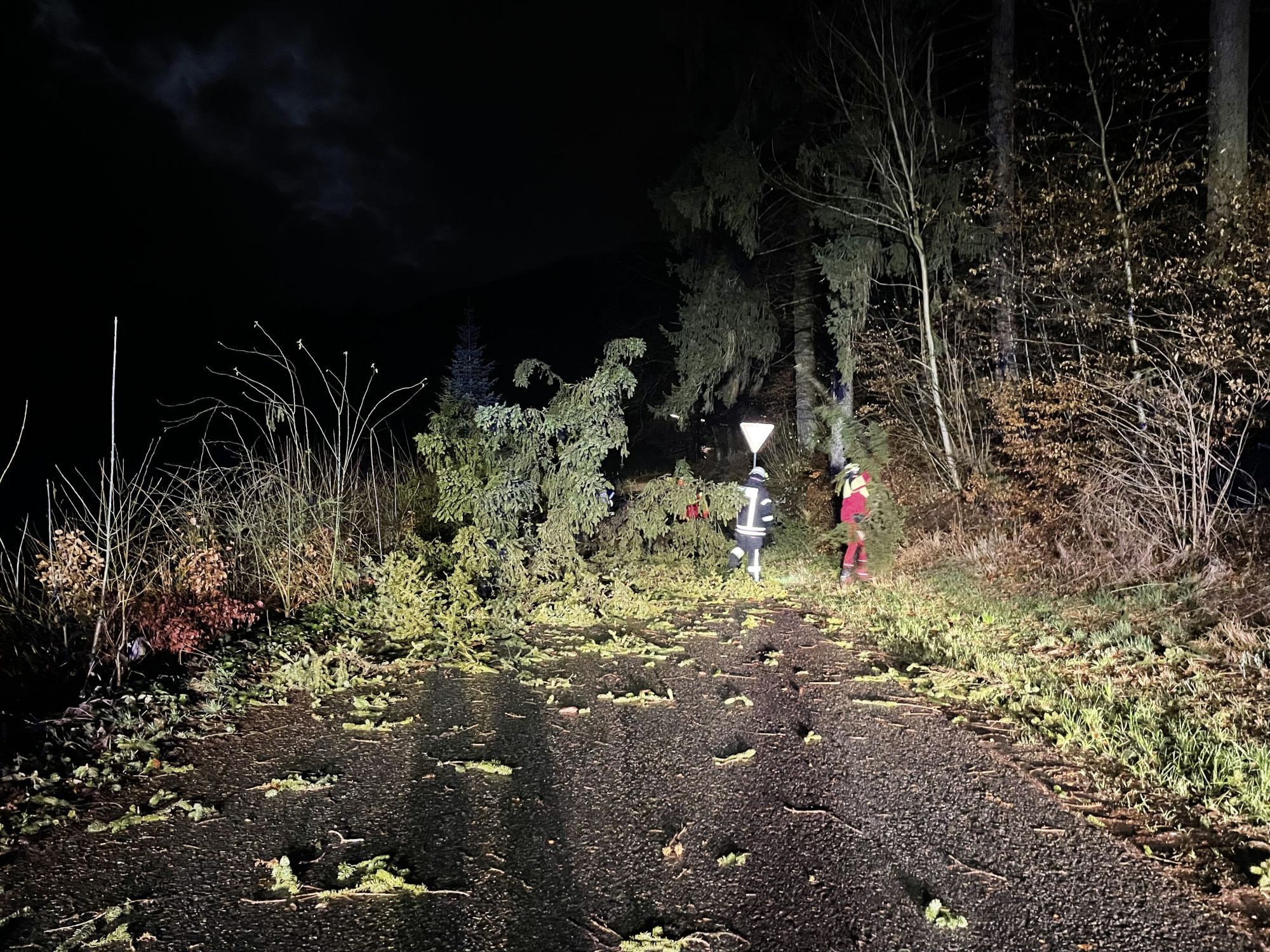 Bereits in der Nacht bis in den frühen Morgen war der Löschzug Meschede gefordert und befreite die L743 bei Enste und die Warsteiner Straße sowie den Hirschberger Weg auf dem Stimmstamm von herabgestürzten Bäumen. Im Zuge dessen sperrte die Polizei am frühen Morgen den Hirschberger Weg.