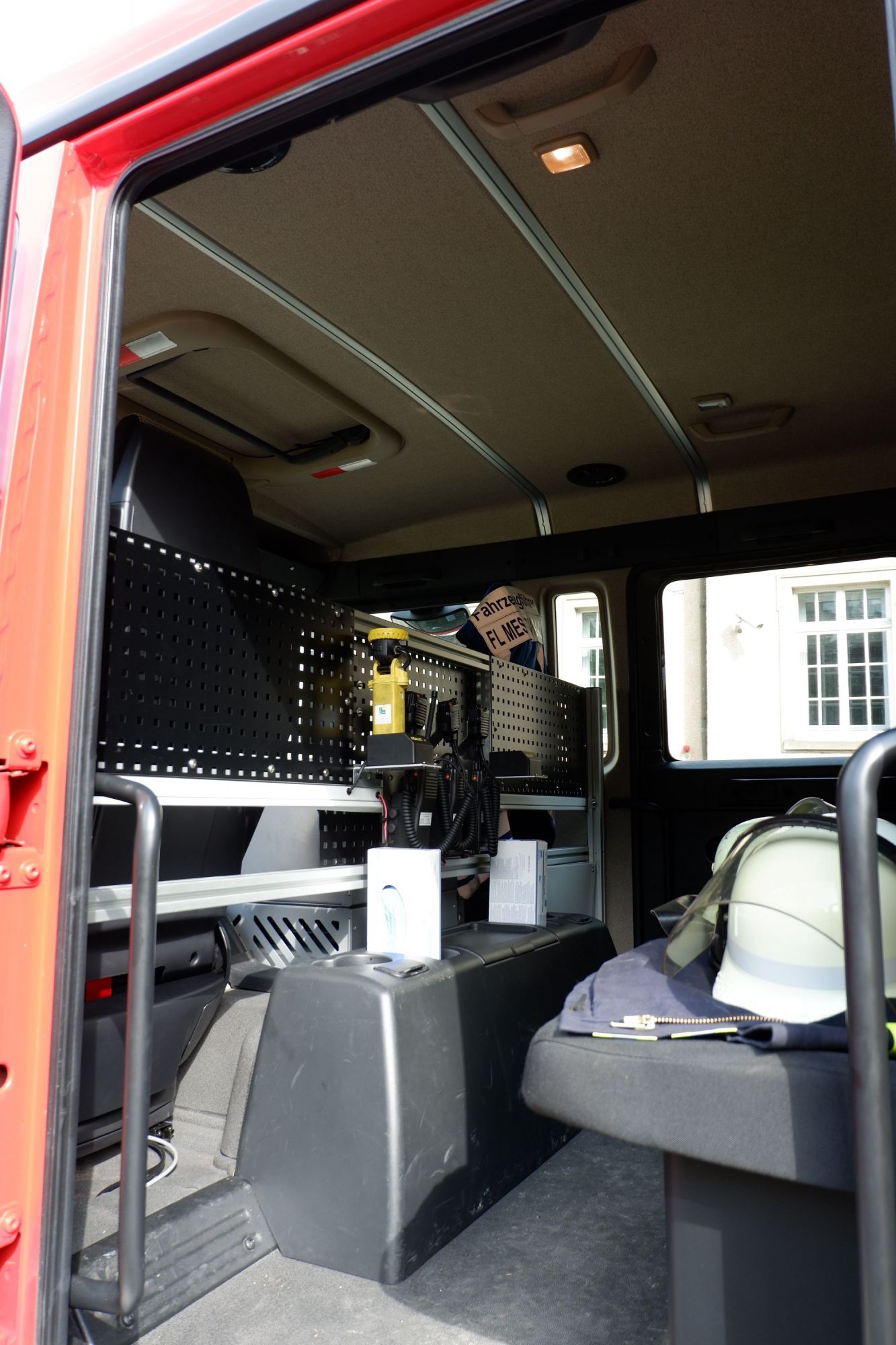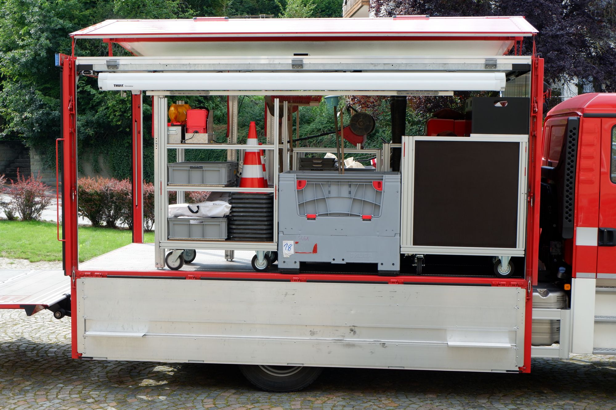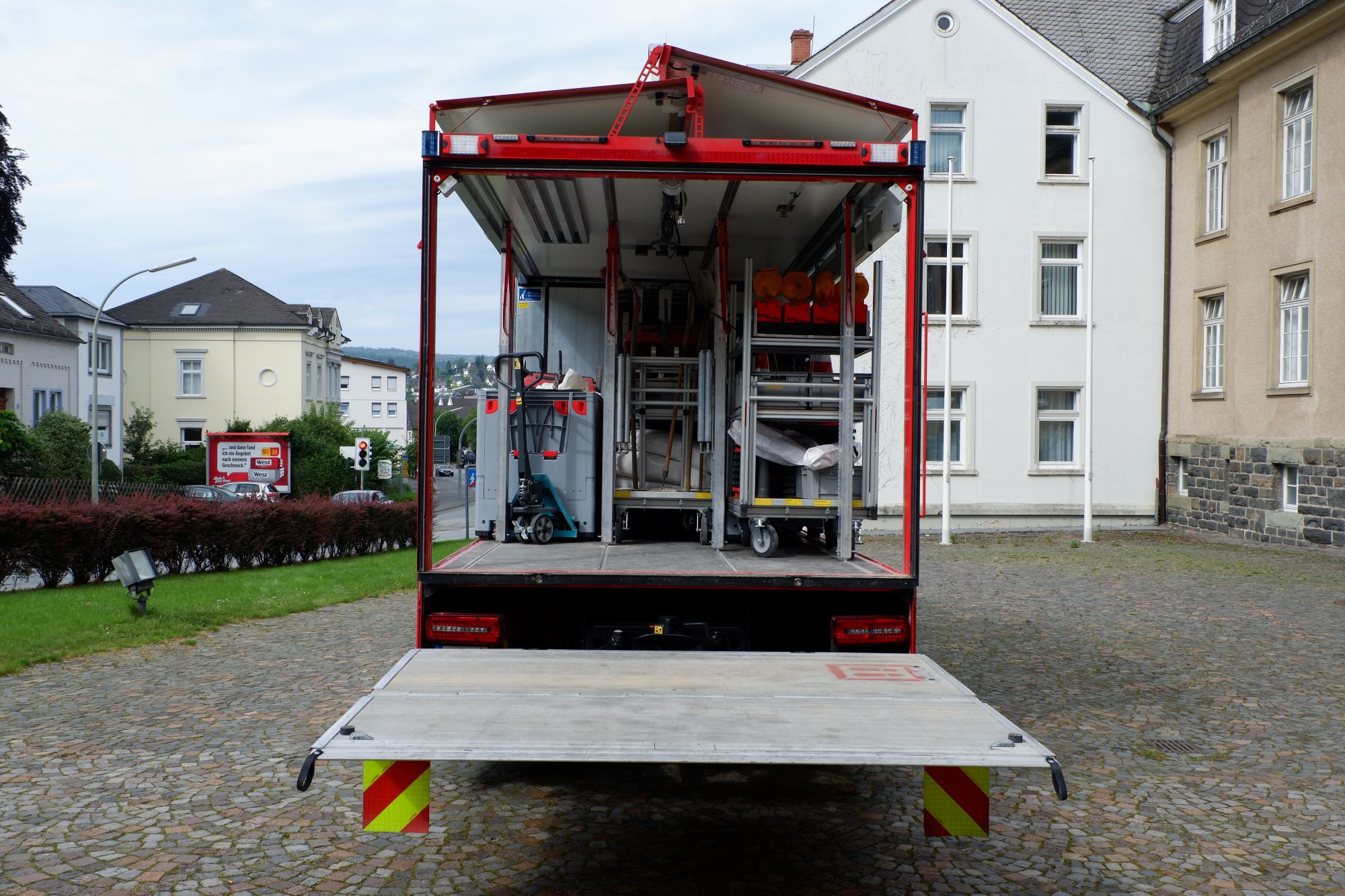 Für den Einsatz als Schlauchwagen verfügt das Fahrzeug über eine teilbare Ladebordwand, Sicherungspunkte für die Person auf der Ladefläche und über Kamera und Gegensprechanlage. Durch eine spezielle Verriegelung beeinträchtigt die Teilbarkeit der Ladebordwand nicht die mögliche Nutzung als Überfahrbrücke für entsprechende Beladesituationen.