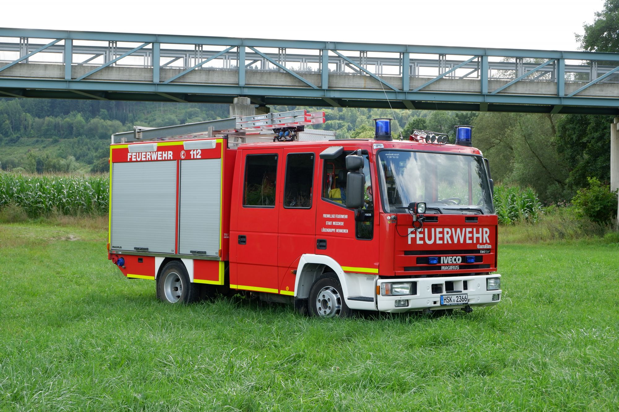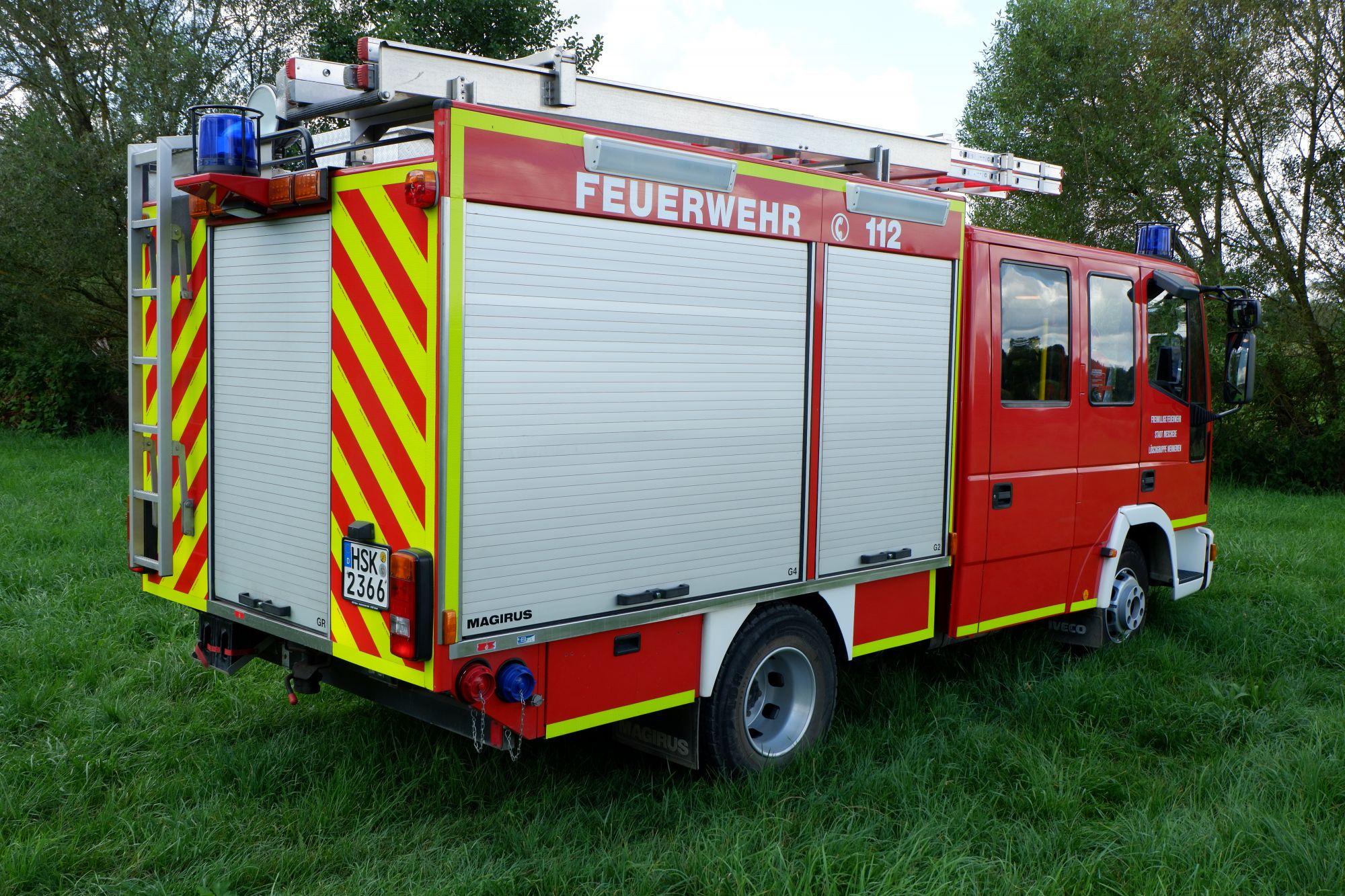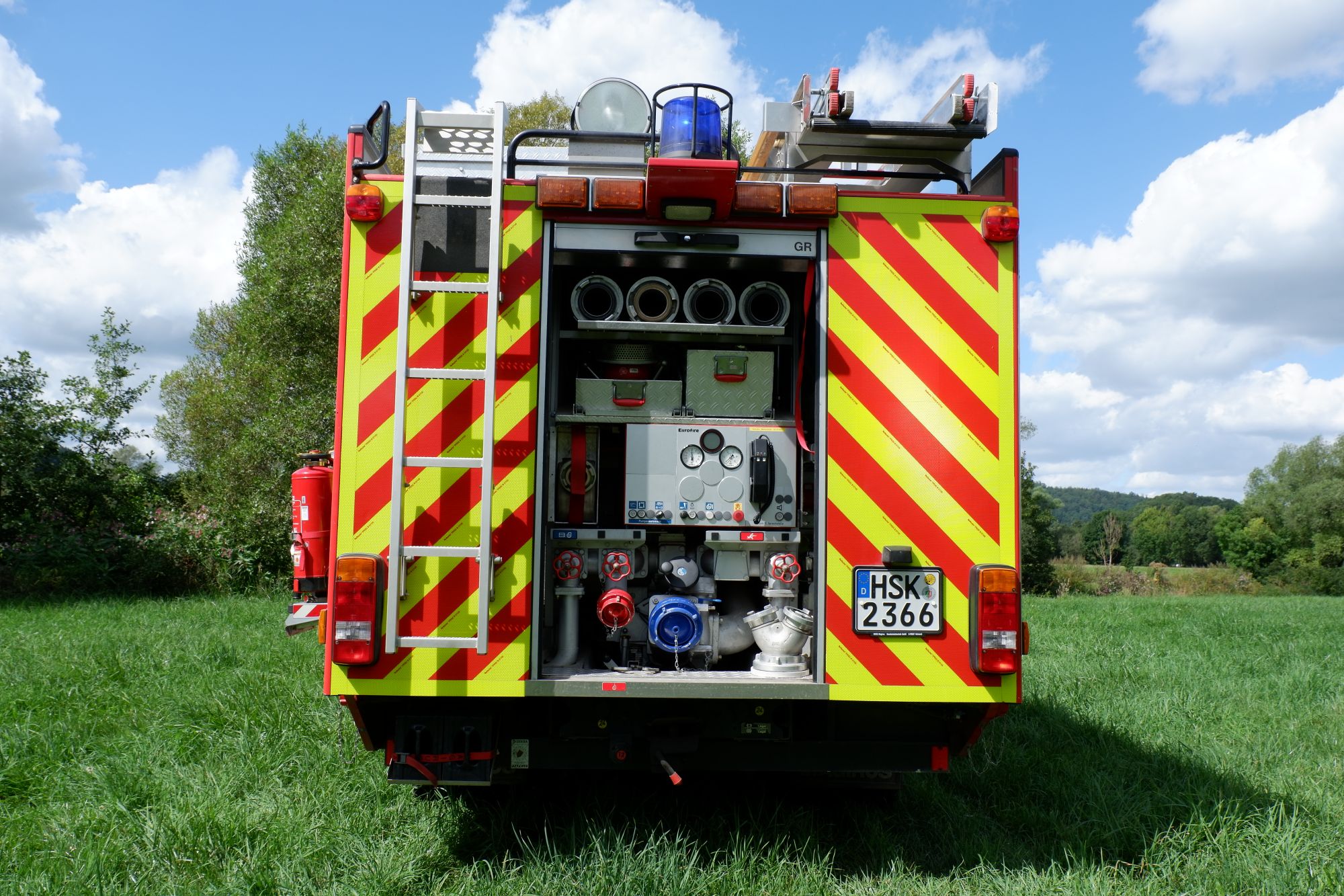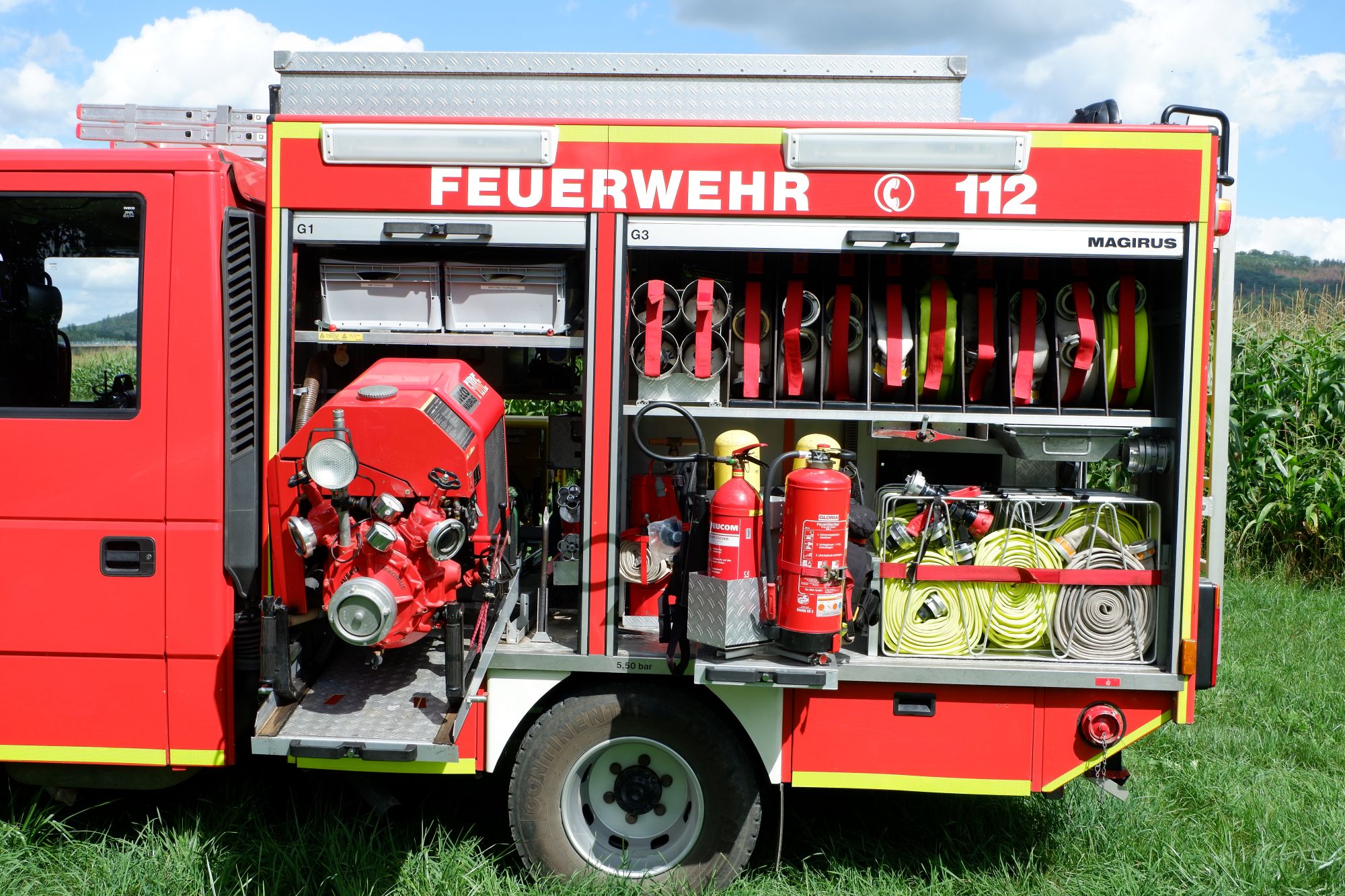 - Zwei eingebaute Pressluftatmer für den Angriffstrupp (Nachgerüstet mit Leinenbeutel und Gurttasche mit Bandschlinge, Kreide und Messer)