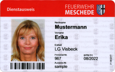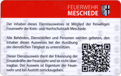 So Sieht der Dienstausweis der Freiwilligen Feuerwehr der Stadt Meschede aus.